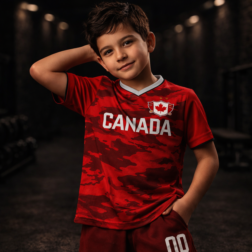 Este equipamento infantil captura a essência da Seleção Canadiana. Veste os teus filhos e vê o brilho nos olhos deles ao sentirem-se parte da equipa. No estádio, no recreio ou em casa a torcer pelo próximo golo histórico. Porque apoiar o Canadá não é só para os grandes… é uma emoção que passa de geração em geração.