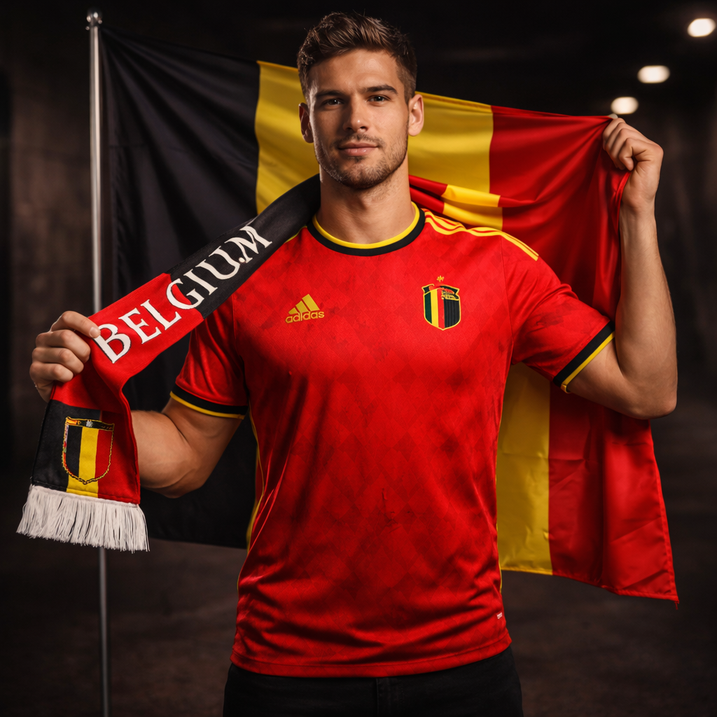 Este kit completo captura a essência da Seleção Belga. Veste a camisola, enrola o cachecol e hasteia a bandeira – sente que estás totalmente unido à equipa e a milhões de torcedores. No estádio, na varanda, na rua ou em casa a vibrar com cada golo histórico. Porque apoiar Bélgica não é só comprar peças… é viver a emoção completa que dura para sempre.