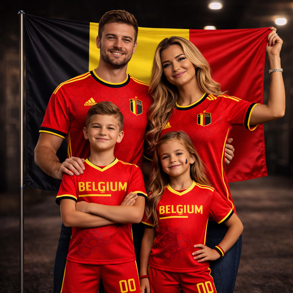 Este kit legado captura a essência da Seleção Belga para toda a família. Vistam as camisolas, ponham os equipamentos nos vossos filhos s e hasteiem a bandeira juntos. Sintam que estão unidos à equipa e a milhões de torcedores. No estádio em família, na varanda a vibrar ou em casa a torcer pelo próximo golo histórico. Porque apoiar Bélgica não é só cultura… é uma emoção que se passa de pais para filhos e dura para sempre.