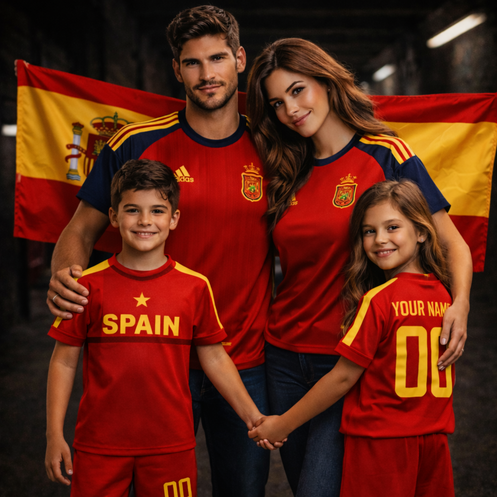 Este kit legado captura a essência da Seleção Espanhola para toda a família. Vistam as camisolas, ponham os equipamentos nos vossos filhos s e hasteiem a bandeira juntos. Sintam que estão unidos à equipa e a milhões de torcedores. No estádio em família, na varanda a vibrar ou em casa a torcer pelo próximo golo histórico. Porque apoiar Espanha não é só cultura… é uma emoção que se passa de pais para filhos e dura para sempre.