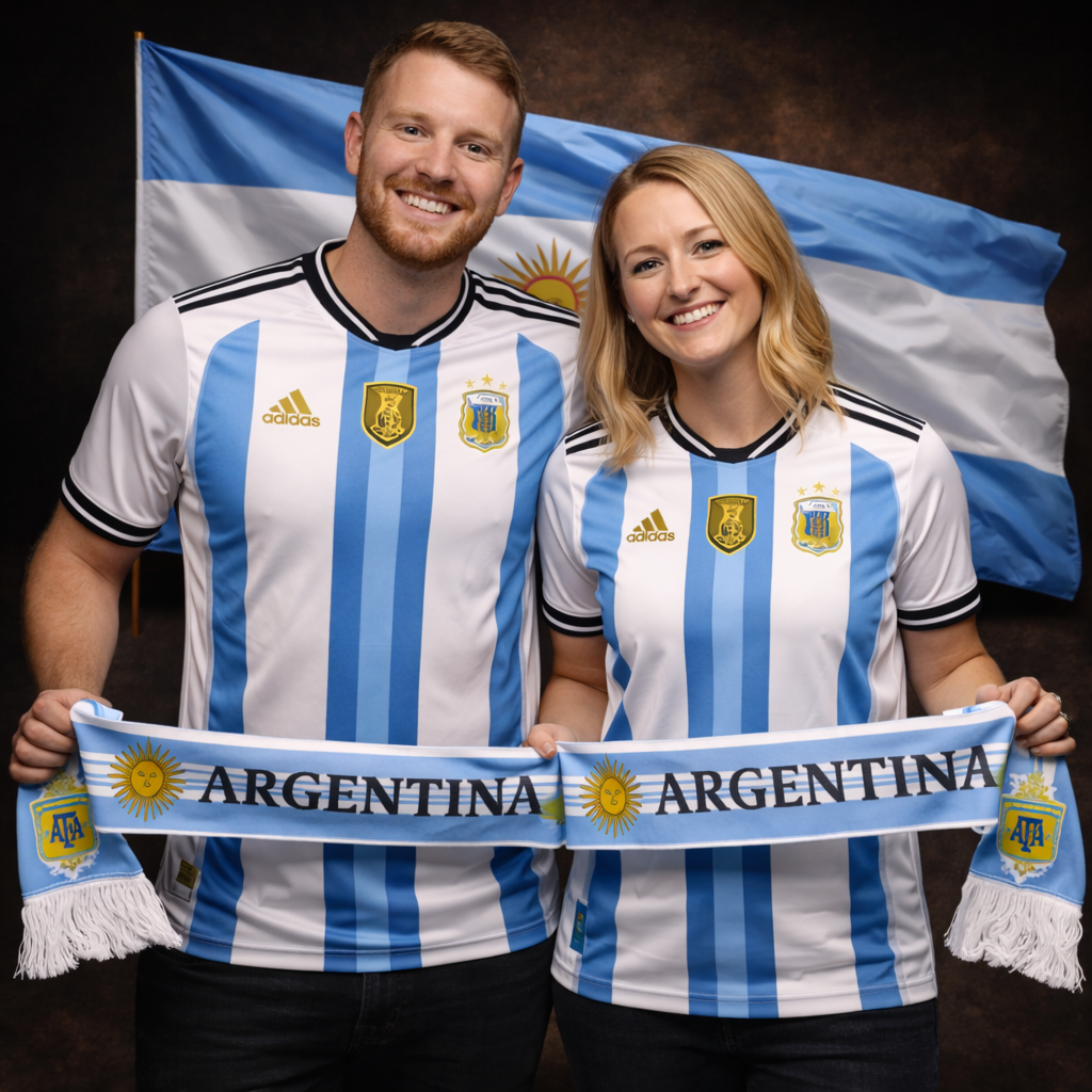 Este kit união captura a essência da Seleção Argentina para casais. Vistam as camisolas juntos, enrolem os cachecóis ao pescoço e hasteiem a bandeira. Sintam que estão unidos à equipa e a milhões de torcedores. No estádio de mãos dadas, na varanda a vibrar juntos ou em casa a torcer pelo próximo golo histórico. Porque apoiar Argentina não é só cultura… é uma emoção partilhada que dura para sempre.