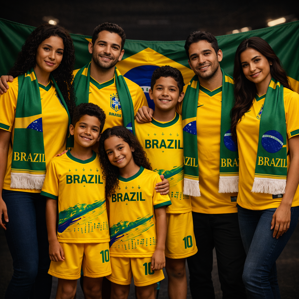 Este kit tribo captura a essência da Seleção Brasileira para famílias grandes ou grupos de amigos. Vistam as camisolas, enrolem os cachecóis, ponham os equipamentos nos mais pequenos e hasteiem a bandeira juntos – sintam que estão unidos como uma verdadeira tribo de torcedores. No estádio em multidão, no churrasco a vibrar ou em casa a torcer pelo próximo golo histórico. Porque apoiar Brasil não é só cultura… é uma emoção coletiva que une o pessoal todo e dura para sempre.